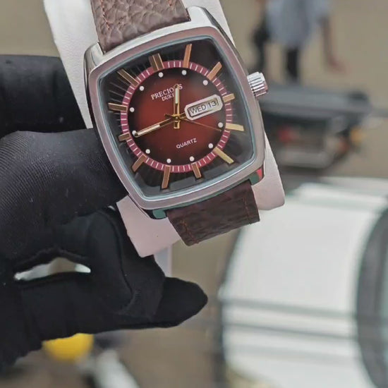 Refined style meets everyday functionality with the PRECIOUS DUKE Square Leather Watch. Designed for the modern professional, this timepiece features a distinctive square barrel dial paired with a genuine leather strap for a polished, classic look. The dual calendar display keeps you on schedule, while the 10M waterproof rating and screw-down crown provide light water resistance for daily wear. Its quartz movement ensures reliable precision, all housed under a mineral reinforced glass mirror for added durability. Whether you're at the office or out for the evening, this sleek accessory adds sophistication to any outfit. Handpicked from Abroad, it's a stylish standout in any watch collection, offering both quality and international appeal. Ideal for men who value design and dependability.